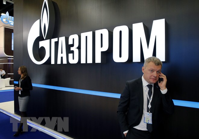 Logo của công ty Gazprom. (Nguồn: EPA/TTXVN)