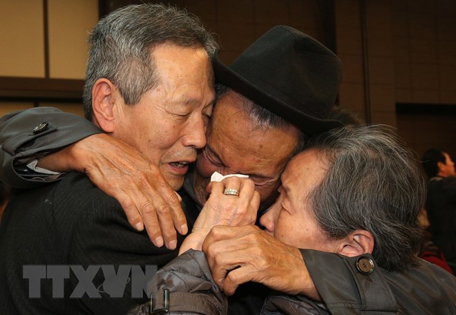Giây phút đoàn tụ của các gia đình ly tán trong cuộc chiến tranh Triều Tiên tại khu nghỉ dưỡng núi Kumgang. (Nguồn: AFP/TTXVN)