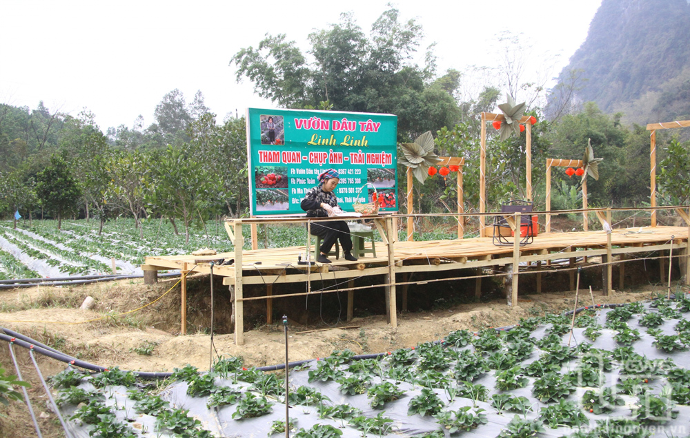 | Mô hình trồng dâu tây kết hợp làm du lịch trải nghiệm của chị Vì Thị Hải Hậu (xã Vũ Chấn, Võ Nhai) là một hướng đi mới ở địa phương. |
