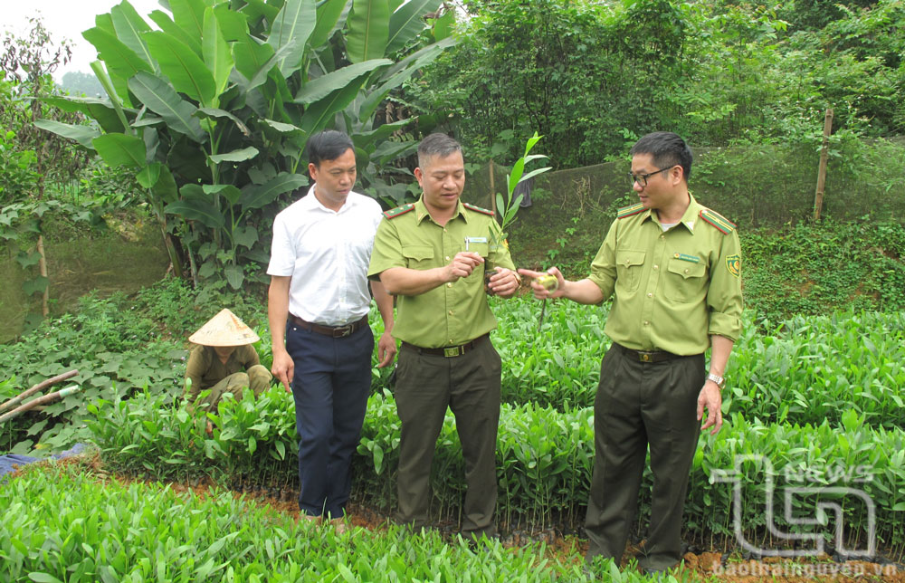 Cán bộ kiểm lâm kiểm tra giống cây trồng tại một vườn ươm.