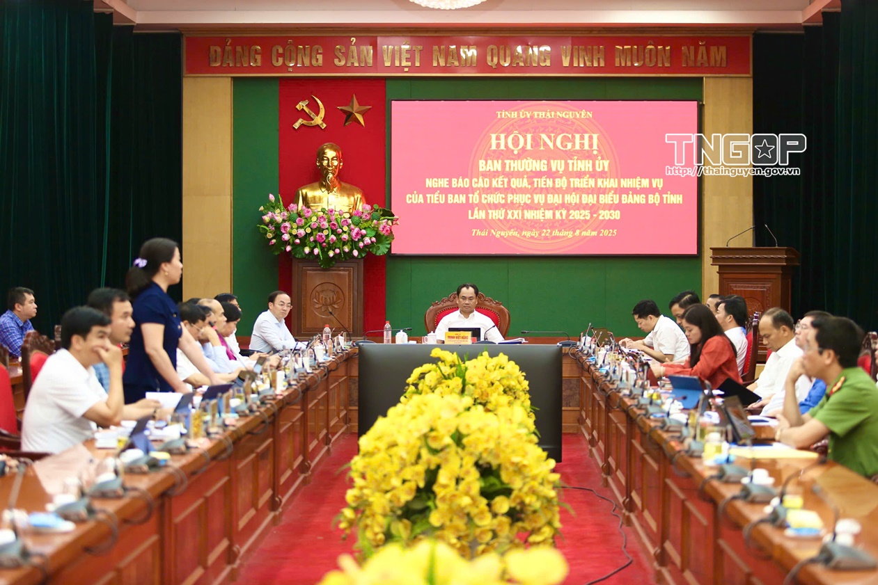 Tại Hội nghị, Tiểu ban Tổ chức phục vụ Đại hội đại biểu Đảng bộ tỉnh lần thứ XXI, nhiệm kỳ 2025 - 2030 đã báo cáo tiến độ công tác chuẩn bị tổ chức phục vụ. Theo đó, tính đến hết ngày 18/8/2025, tiến độ, kết quả triển khai thực hiện các nhiệm vụ, nội dung về công tác tuyên truyền, trang trí, khánh tiết; kịch bản chương trình nghệ thuật chào mừng Đại hội; các video clip, phim tài liệu; lựa chọn, chuẩn bị gắn biển các công trình, dự án trọng điểm; chuẩn bị đảm bảo các điều kiện cơ sở vật chất, hậu cần, lễ tân; kế hoạch bảo đảm an ninh, trật tự... phục vụ Đại hội đại biểu Đảng bộ tỉnh lần thứ XXI đã cơ bản hoàn thành theo kế hoạch đề ra.