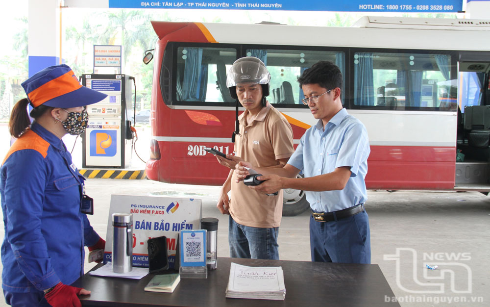 Sau mỗi lần bơm xăng, dầu cho khách hàng, chị Lê Thị Thương và Nguyễn Thị Kim Cúc, nhân viên Cửa hàng xăng dầu 80 (phường Tân Lập, TP. Thái Nguyên), đều sẵn sàng đưa mã QR để khách hàng chuyển khoản khi họ đề nghị thanh toán không dùng tiền mặt. Cùng với đó, hễ ai có nhu cầu về hóa đơn bán hàng, các chị cũng như những nhân viên khác tại cửa hàng đều có thể đáp ứng lập tức.