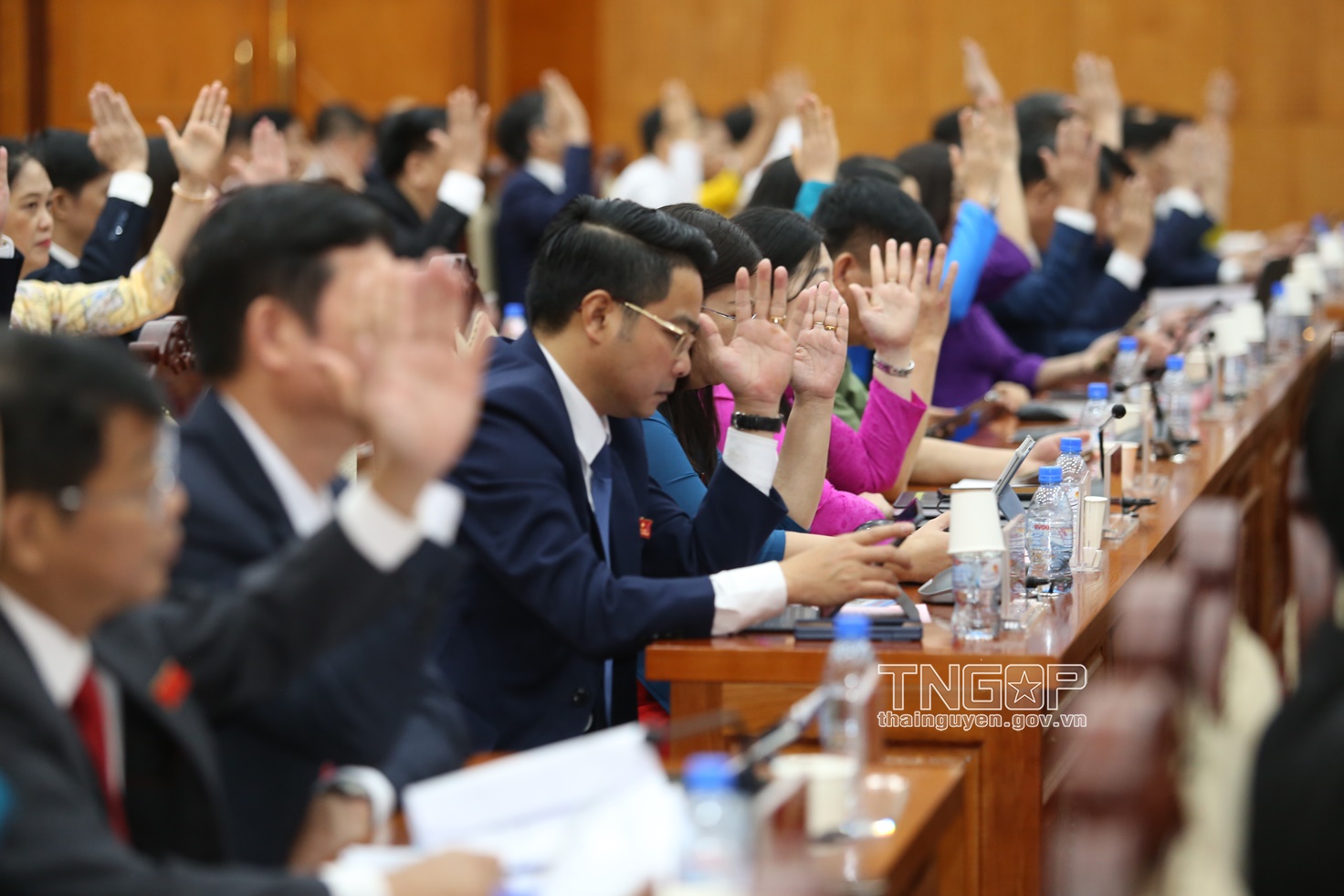 Các đại biểu biểu quyết, thông qua các nội dung trình tại Kỳ họp