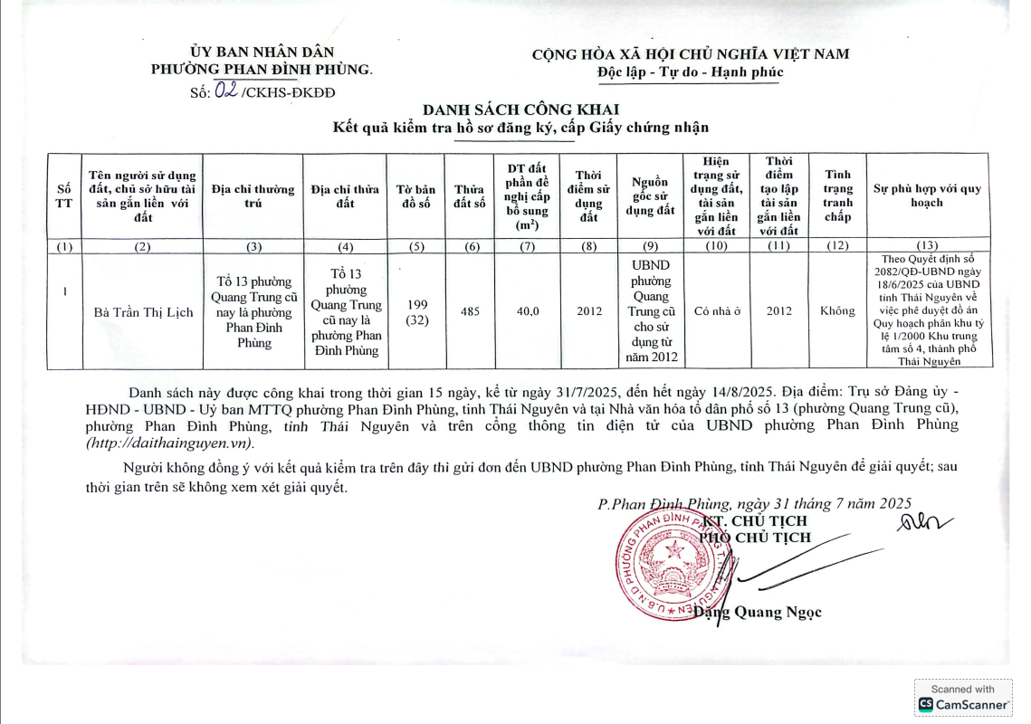 Danh sách công khai kết quả kiểm tra hồ sơ đăng ký, cấp Giấy chứng nhận (Nguyễn Thị Đăng)
