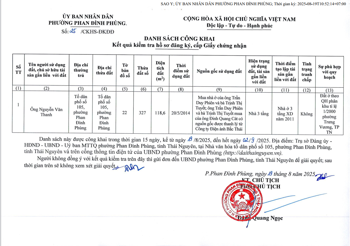 Danh sách công khai kết quả kiểm tra hồ sơ đăng ký, cấp Giấy chứng nhận (Nguyễn Thị Đăng)