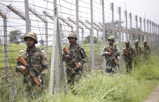 Lực lượng an ninh Ấn Độ tuần tra tại khu vực biên giới Ấn Độ- Pakistan. (Ảnh: AFP/TTXVN)