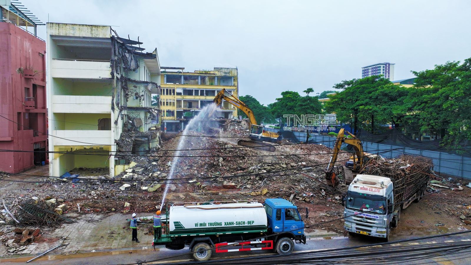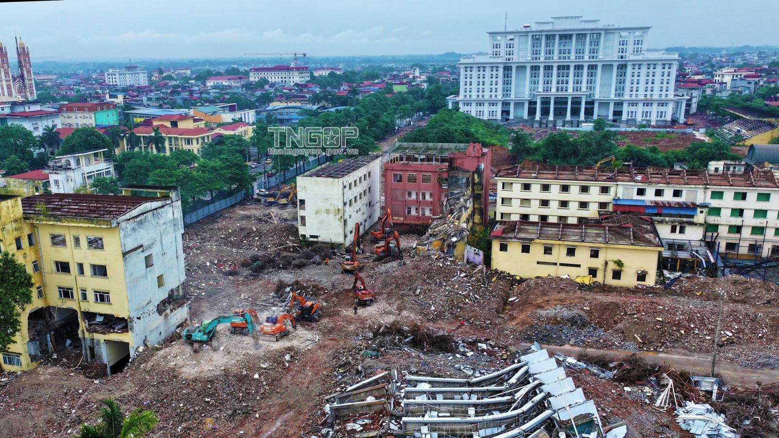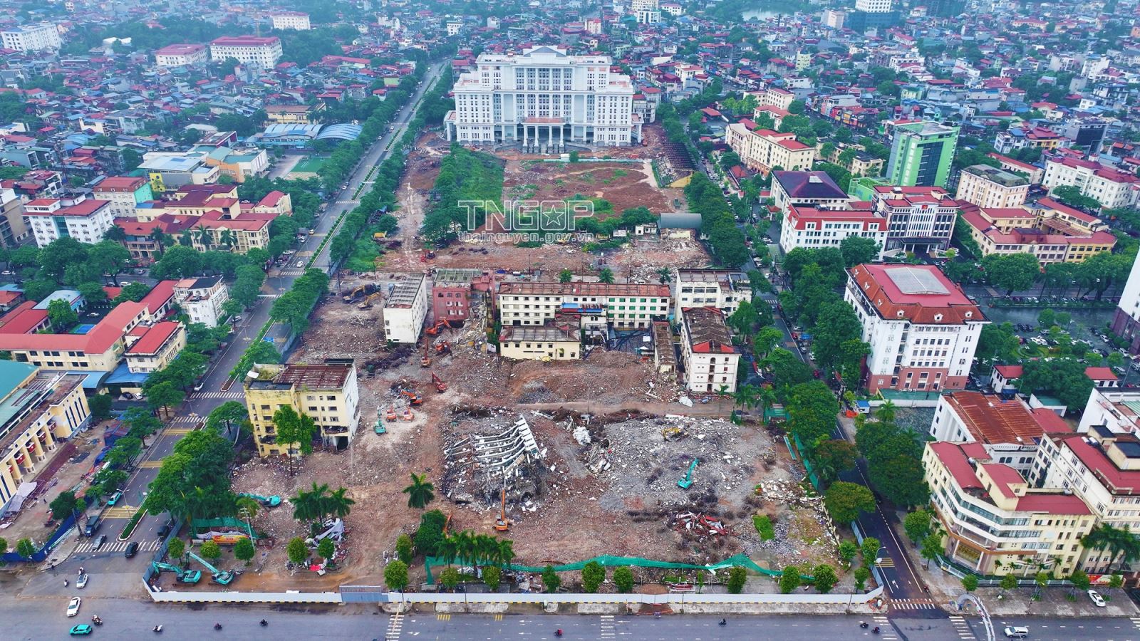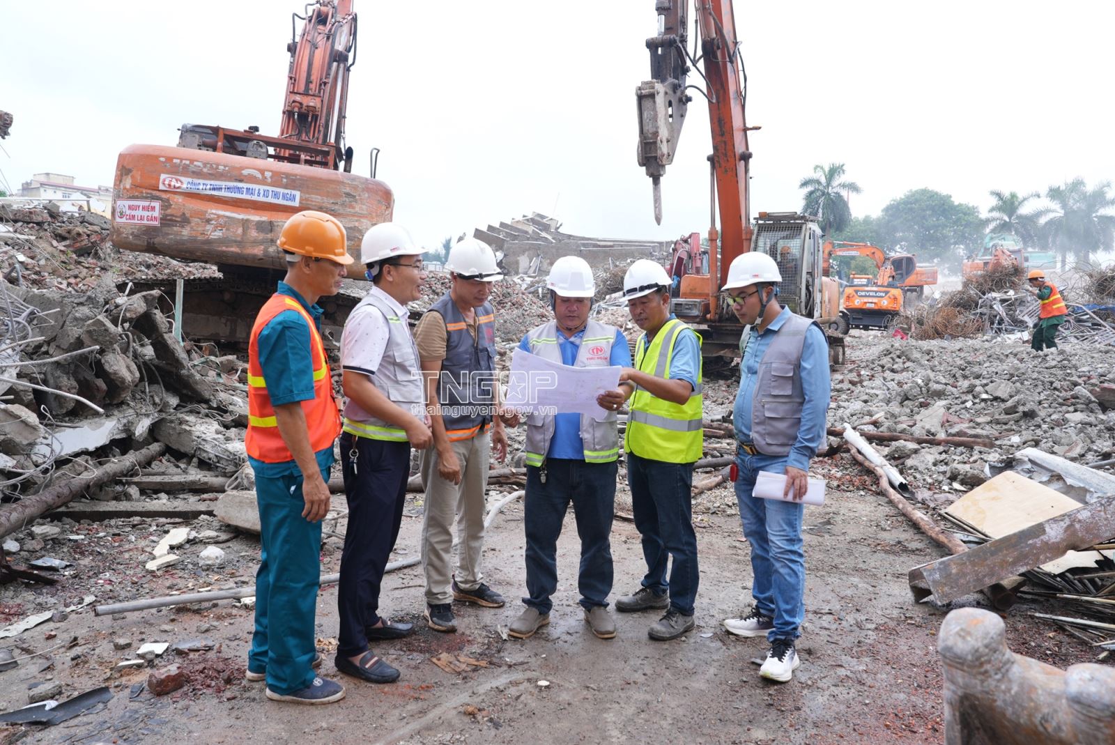 Lượng lớn máy móc, thiết bị, công nhân được huy động làm việc liên tục để tháo dỡ, đập bỏ và di dời vật kiến trúc trên khu đất. Đến nay, trên 50% khối lượng công trình đã được thực hiện