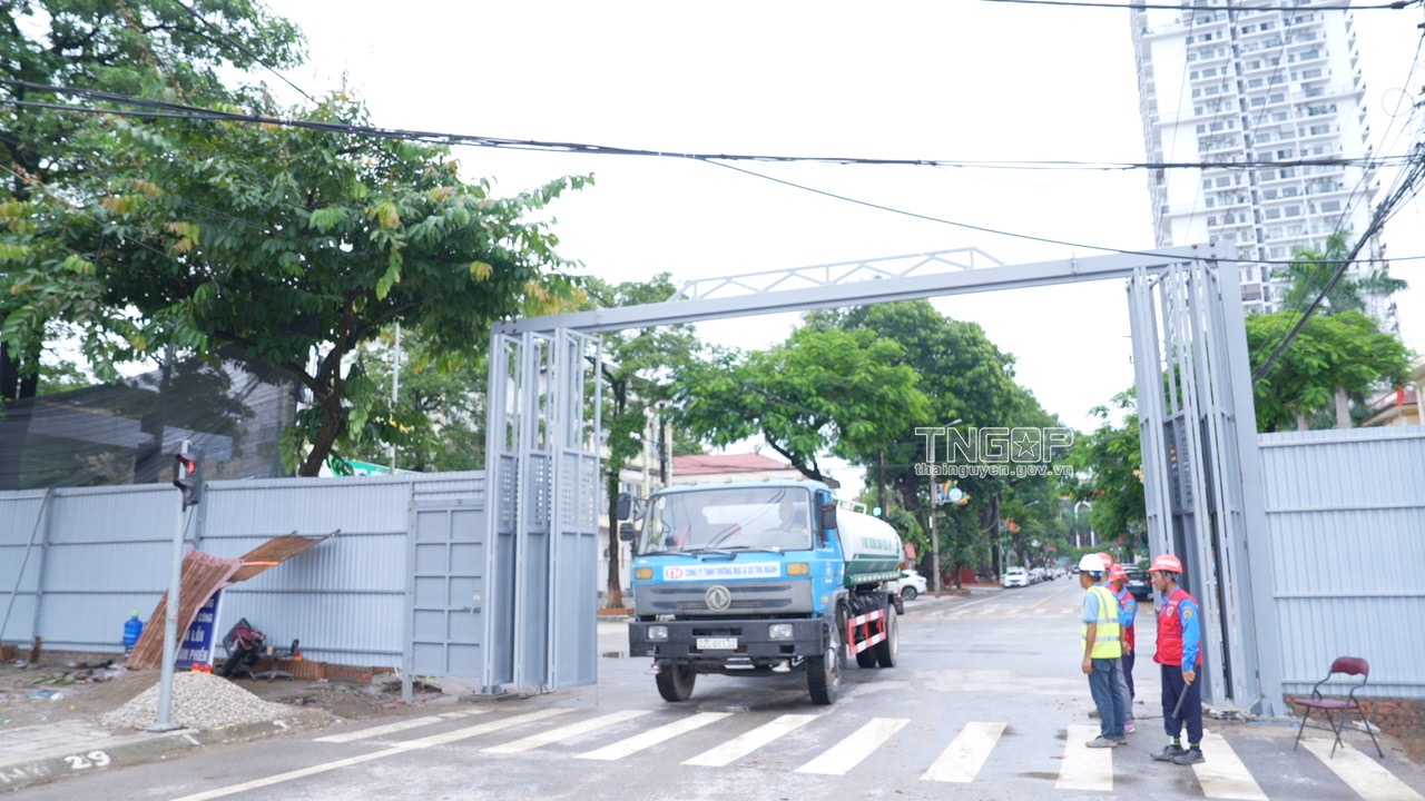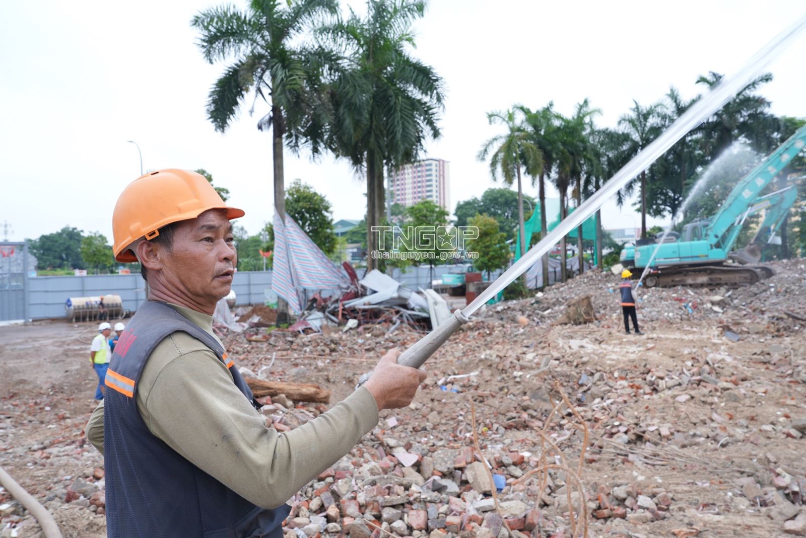 Đơn vị thi công áp dụng các biện pháp như phun tưới nước để giảm thiểu tối đa bụi, tiếng ồn