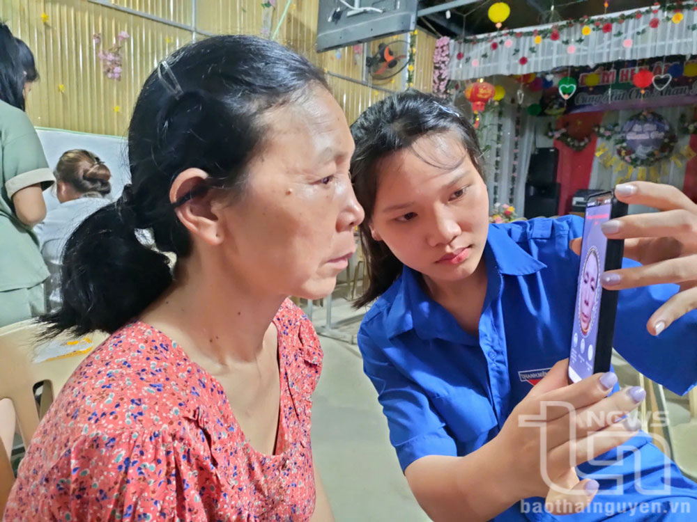 | Đoàn viên thanh niên xã Văn Hán (Đồng Hỷ) hỗ trợ người dân sử dụng các ứng dụng số trên điện thoại thông minh. |