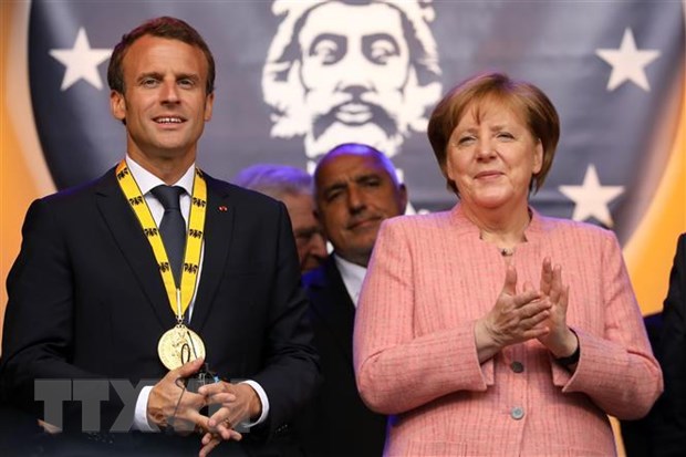 Thủ tướng Đức Angela Merkel (phải) và Tổng thống Pháp Emmanuel Macron. (Ảnh: AFP/TTXVN)