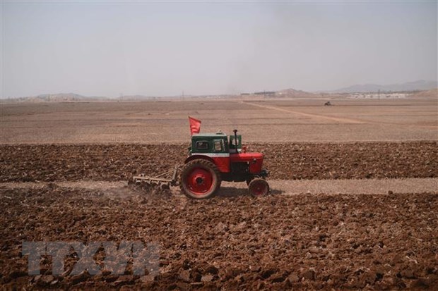 Một máy kéo được người dân Triều Tiên sử dụng trong nông nghiệp tại một địa phương nằm trên lộ trình từ Bình Nhưỡng tới tỉnh Bắc Phyongan. (Ảnh: AFP/TTXVN)