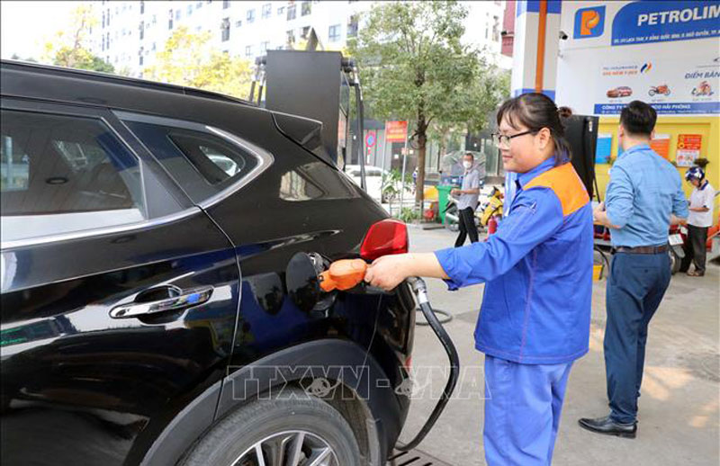 Hoạt động bán xăng tại cửa hàng số 11 Petrolimex. Ảnh: Hoàng Ngọc/TTXVN