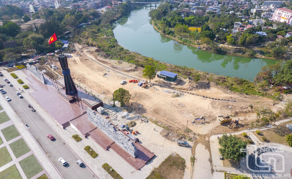 | Dự án xây dựng cảnh quan phía sau Quảng trường Võ Nguyễn Giáp (TP. Thái Nguyên) đang được triển khai bảo đảm tiến độ. Ảnh: Nguyên Ngọc |
