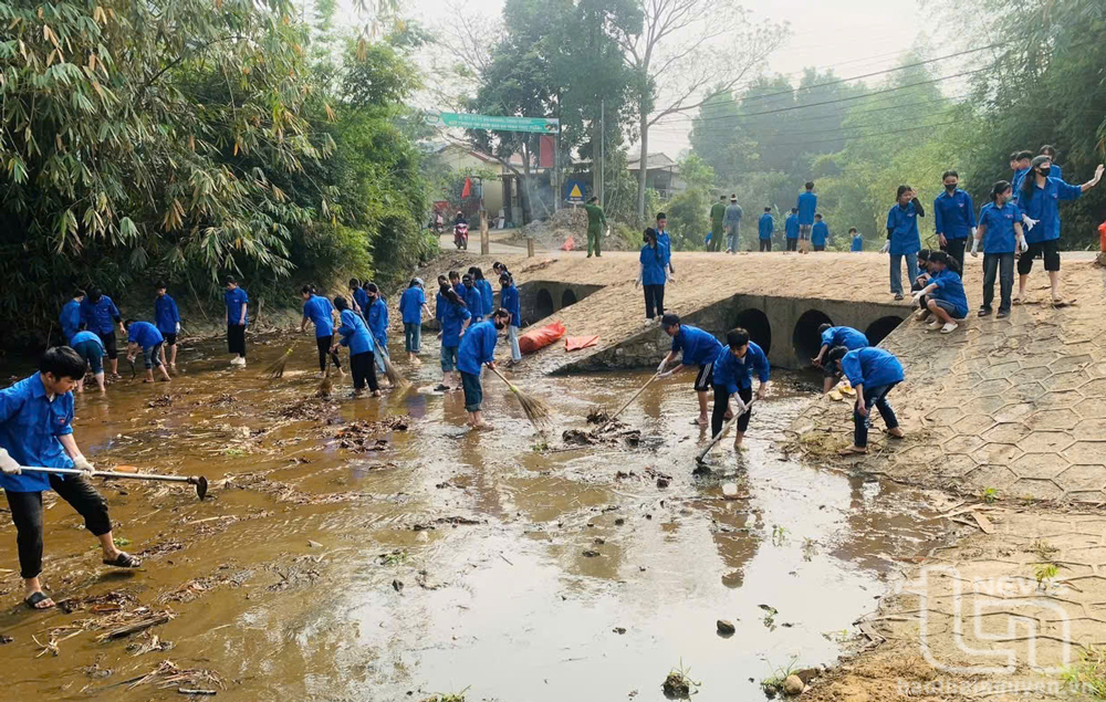 | Đoàn viên, thanh niên huyện Đồng Hỷ ra quân vệ sinh môi trường, xây dựng quê hương xanh, sạch, đẹp. |