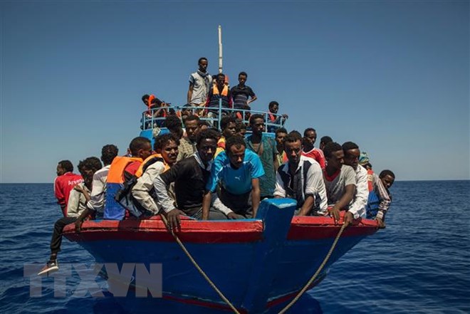 Tàu cứu hộ chở người di cư được cứu trên Địa Trung Hải ngày 12/6/2018. (Ảnh: EPA/TTXVN)