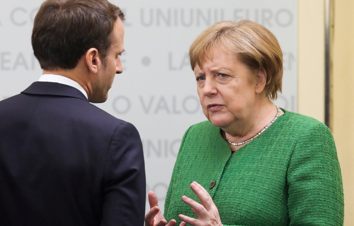 Tổng thống Pháp Macron (trái) và Thủ tướng Đức Merkel. (Nguồn: EPA)