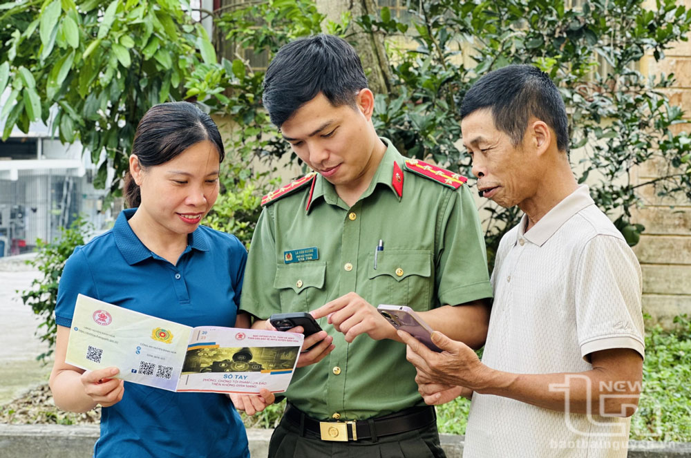 Cán bộ Công an huyện Định Hóa tuyên truyền về phòng chống tội phạm trên không gian mạng.