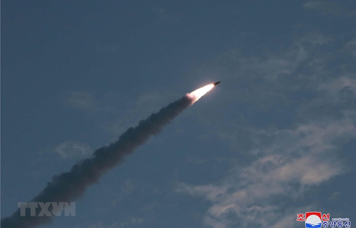Một tên lửa của Triều Tiên được phóng thử tại địa điểm gần thị trấn ven biển miền Đông Wonsan ngày 26/7/2019. (Ảnh: Yonhap/TTXVN)