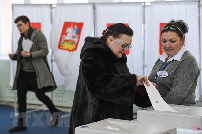 Cử tri Nga bỏ phiếu tại một điểm bầu cử ở thủ đô Moskva ngày 18/3. (Nguồn: AFP/TTXVN)