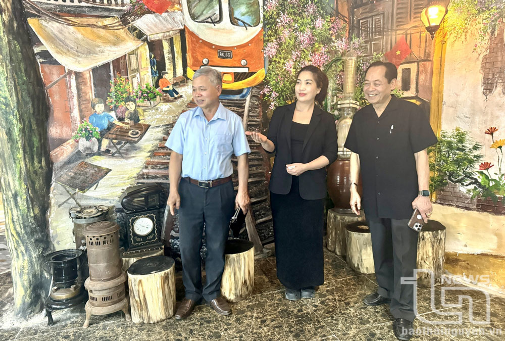 | Ông Lê Văn Thoan (người bên phải ảnh) đi kiểm tra công việc ở động Ba cây thông, Khu du lịch hồ Núi Cốc. |