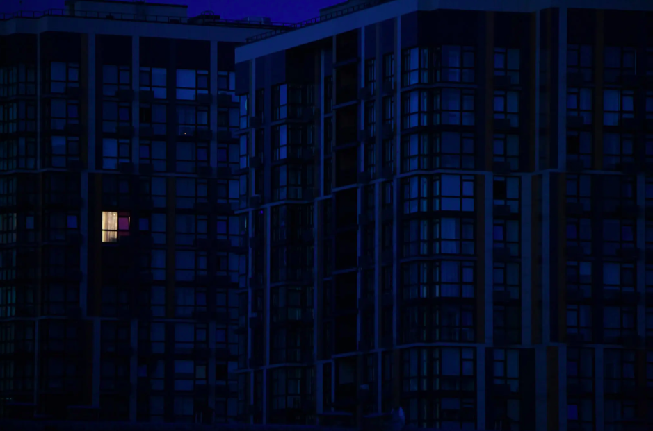 Khung cảnh mất điện vào buổi tối tại một toà nhà ở Ukraire