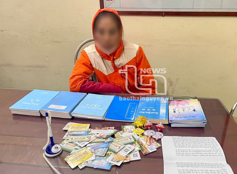 Cụ thể, khoảng 18 giờ ngày 1-1, nhận được tin báo của quần chúng nhân dân, Đội An ninh (Công an huyện Phú Bình) phối hợp cùng Công an xã Kha Sơn điều tra và phát hiện đối tượng Trần Thị Minh, sinh năm 1981, trú tại bản Xoan, xã Xuân Lương, huyện Yên Thế, tỉnh Bắc Giang, đang có hành vi tuyên truyền, phát tán tài liệu, đồ vật liên quan đến Pháp luân công tại khu vực xóm Đầu Cầu Ca, xã Kha Sơn. Tang vật thu giữ gồm 21 quyển tài liệu và gần 80 thẻ có nội dung liên quan đến Pháp luân công.