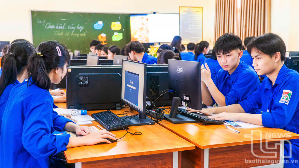Sau một buổi học thiết kế website, em Trần Ngọc Diệp, học sinh lớp 12, Trường THPT Nguyễn Huệ (Đại Từ), hào hứng chia sẻ: Đây là lần đầu tiên em được tự tay xây dựng một website hoàn chỉnh, từ lên ý tưởng nội dung đến thiết kế hình ảnh. Chúng em không chỉ học được kỹ năng làm việc nhóm bảo đảm hiệu quả mà còn biết cách ứng dụng trí tuệ nhân tạo (AI) để tối ưu hóa nội dung và hình ảnh cho sản phẩm số của mình...