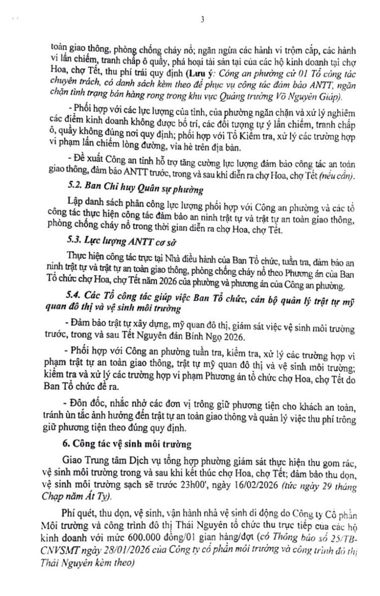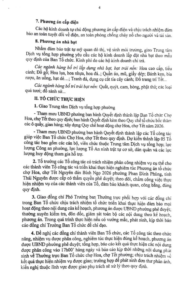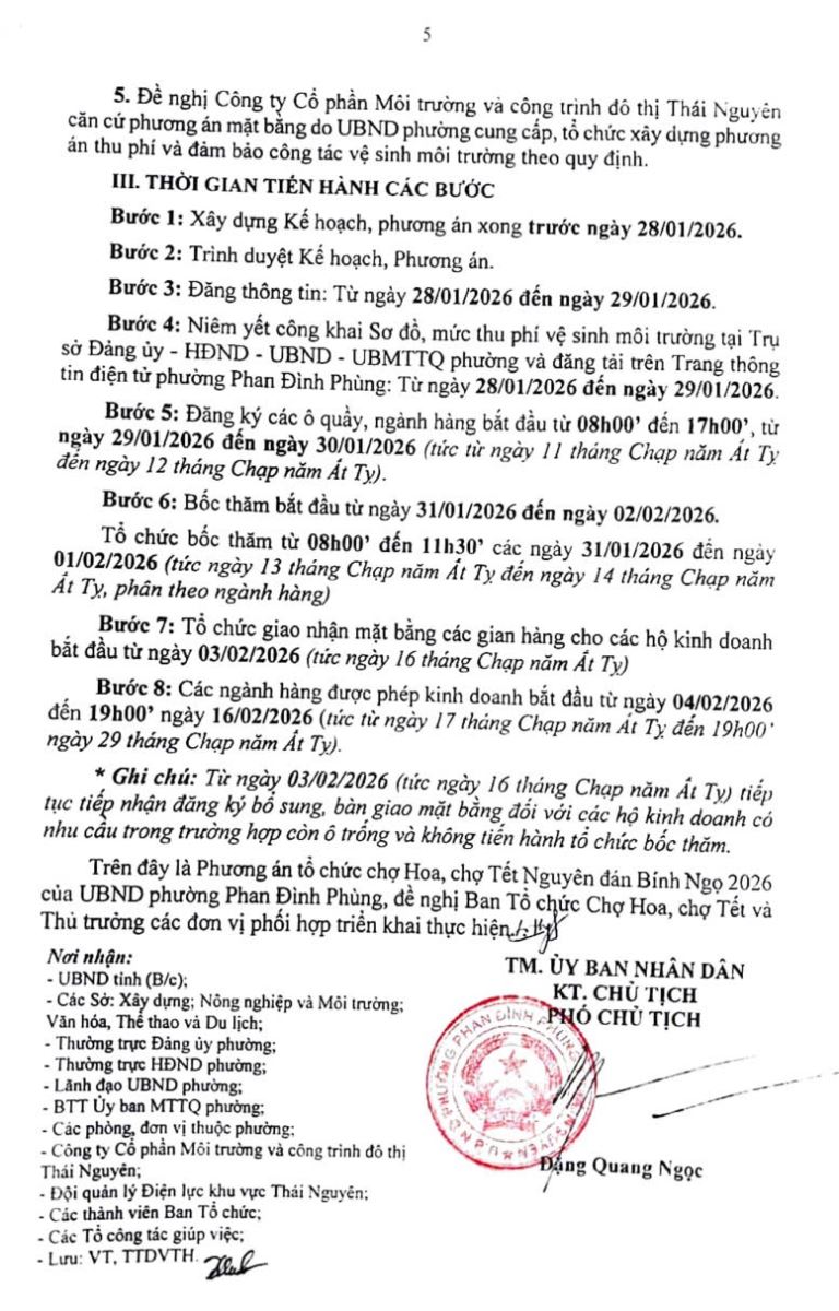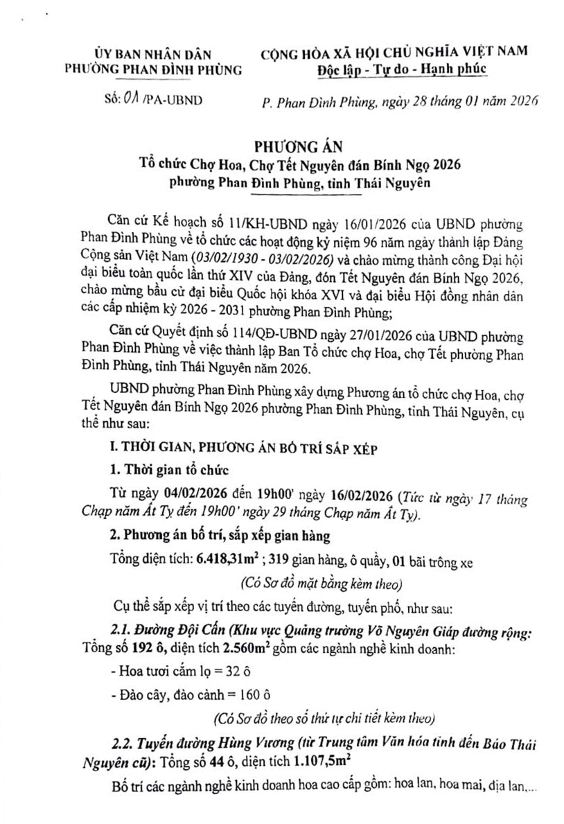 PHƯƠNG ÁN TỔ CHỨC CHỢ HOA, CHỢ TẾT NGUYÊN ĐÁN BÍNH NGỌ 2026 PHƯỜNG PHAN ĐÌNH PHÙNG, TỈNH THÁI NGUYÊN