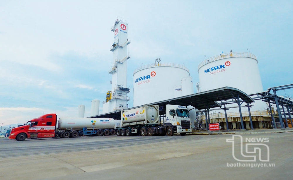 Tập đoàn khí công nghiệp hàng đầu thế giới Messer đang triển khai dự án đầu tư với tổng trị giá 43 triệu USD tại Khu công nghiệp Yên Bình, Khu công nghiệp Sông Công I. Tập đoàn định hướng phát triển các nhà máy tại Thái Nguyên trở thành trung tâm sản xuất và phân phối các loại khí công nghiệp đặc biệt để cung cấp cho các nhà máy điện tử tại Thái Nguyên và toàn bộ các tỉnh, thành phố phía Bắc. Ảnh: T.L