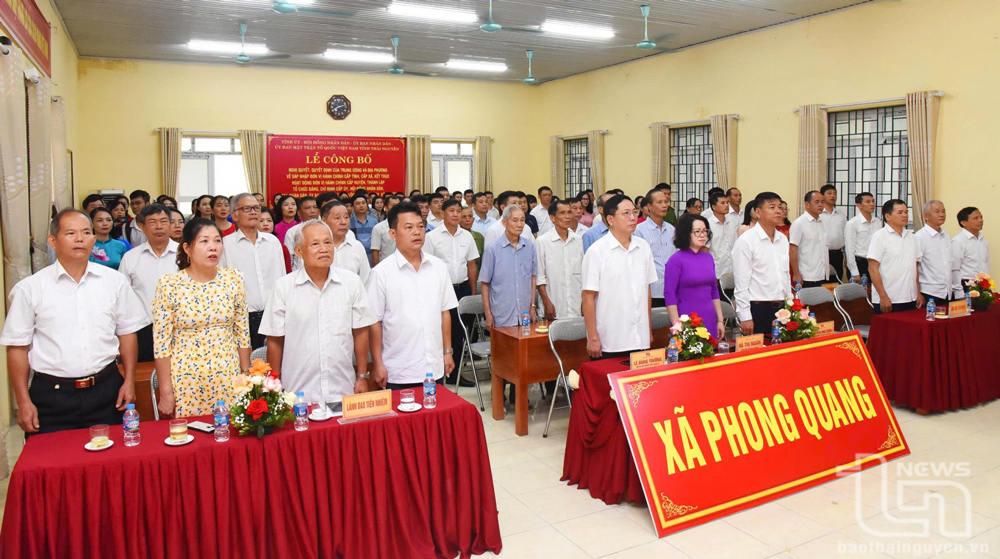 Cán bộ, đảng viên tham dự Lễ công bố nghị quyết, quyết định của Trung ương và địa phương về sáp nhập đơn vị hành chính cấp tỉnh, cấp xã tại xã Phong Quang.
