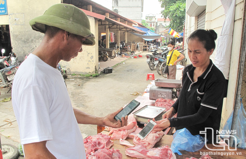 Tìm hiểu thực tế tại chợ Tân Đức (Phú Bình), chúng tôi rất bất ngờ khi mua mấy bắp ngô, rau củ quả đều được đề nghị chuyển khoản. Thấy tôi tỏ ra ngạc nhiên, chị Nguyễn Thị Quyên, một tiểu thương bán hàng rau tại chợ Tân Đức, phấn khởi nói: Giờ nhiều người đi chợ không phải lo cầm theo tiền, có khi bất cẩn còn rơi mất. Cứ có tiền trong tài khoản mua ở trên “giời” (đặt hàng trên các kênh bán hàng trực tuyến) hay dưới đất đều được.