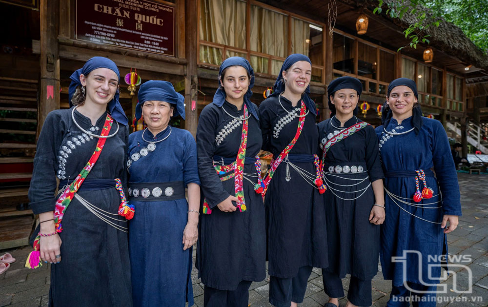 | Du khách nước ngoài trải nghiệm tại Khu bảo tồn Làng nhà sàn du lịch sinh thái Thái Hải, xã Thịnh Đức (TP. Thái Nguyên). |