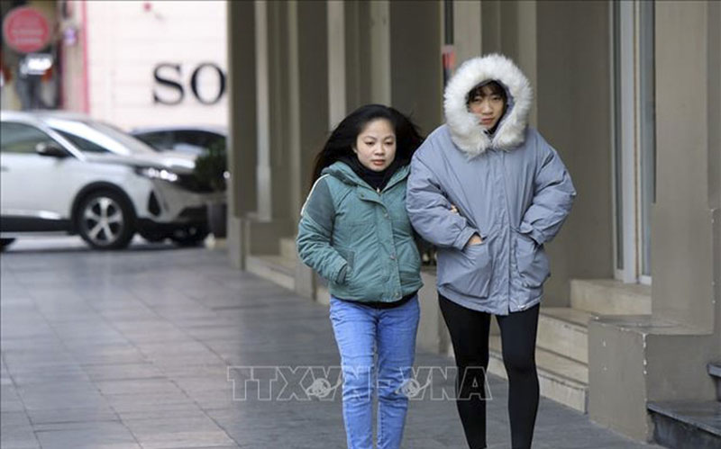 Người dân co ro trong giá rét Hà Nội. Ảnh: Tuấn Anh - TTXVN