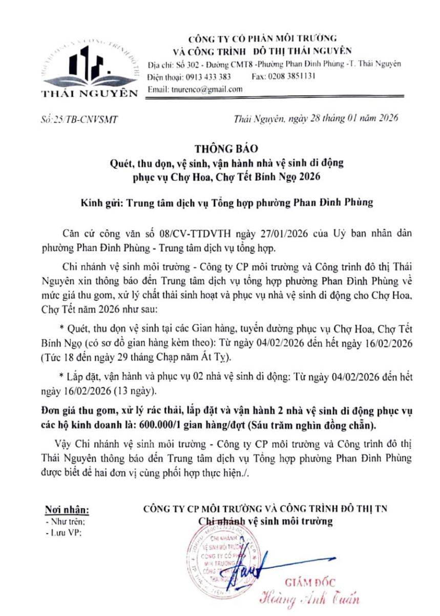 THÔNG BÁO Quét, thu dọn, vệ sinh, vận hành nhà vệ sinh di động phục vụ Chợ Hoa, Chợ Tết Bính Ngọ 2026