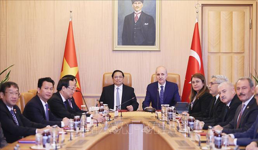 Nhân dịp này, Thủ tướng Chính phủ Phạm Minh Chính chuyển lời mời của Chủ tịch Quốc hội Vương Đình Huệ mời Chủ tịch Quốc hội Thổ Nhĩ Kỳ Numan Kurtulmus sớm thăm chính thức Việt Nam. Chủ tịch Quốc hội Numan Kurtulmus vui vẻ nhận lời và bày tỏ mong muốn thăm Việt Nam trong năm 2024.