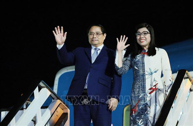 Thủ tướng Phạm Minh Chính và Phu nhân đến thành phố Melbourne, bắt đầu chuyến tham dự Hội nghị Cấp cao Đặc biệt kỷ niệm 50 năm quan hệ ASEAN – Australia, thăm chính thức Australia. Ảnh: Dương Giang/TTXVN
