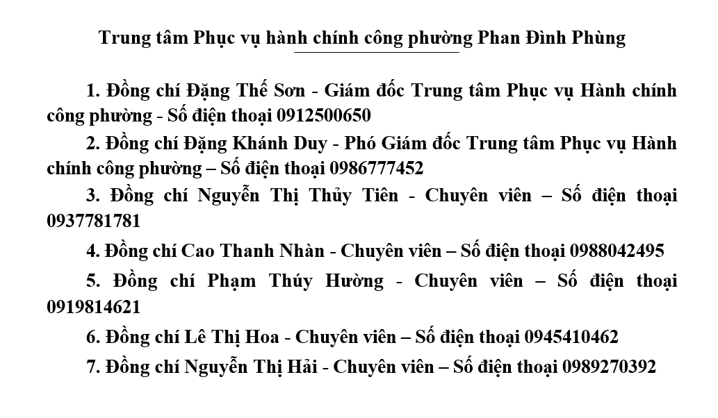 DANH SÁCH CÁC ĐẠI BIỂU HỘI ĐỒNG NHÂN DÂN PHƯỜNG PHAN ĐÌNH PHÙNG, NHIỆM KỲ 2021-2026