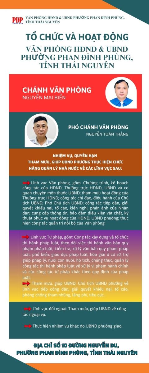 TỔ CHỨC VÀ HOẠT ĐỘNG VĂN PHÒNG HĐND & UBND PHƯỜNG PHAN ĐÌNH PHÙNG, TỈNH THÁI NGUYÊN.