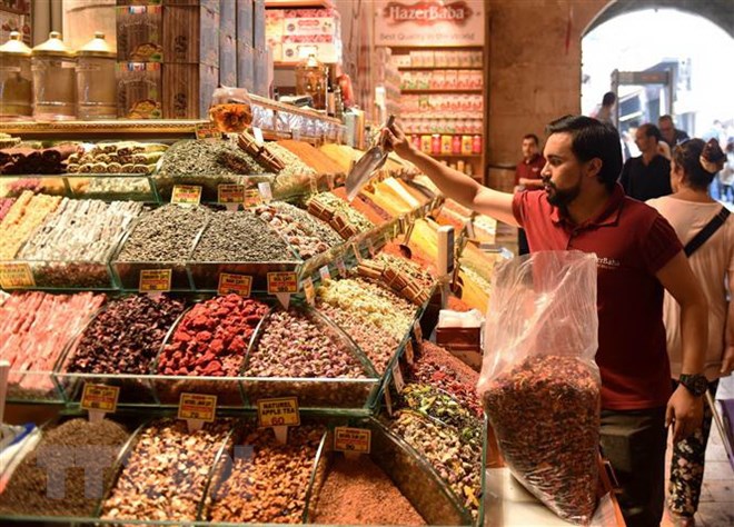 Gian hàng bán đồ gia vị tại một khu chợ ở Istanbul, Thổ Nhĩ Kỳ. (Nguồn: THX/TTXVN)