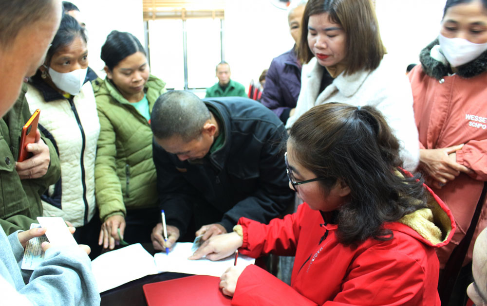 | Người dân làm thủ tục nhận tiền hỗ trợ. |
