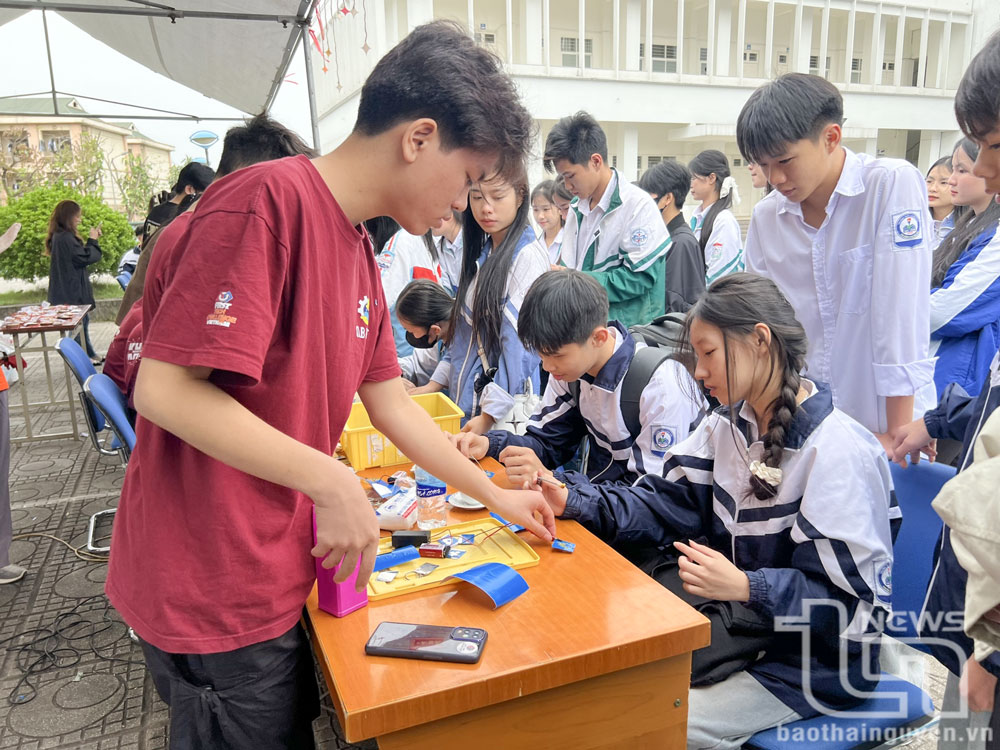 | Học sinh các trường THPT trên địa bàn tỉnh tham gia sân chơi khám phá công nghệ. |