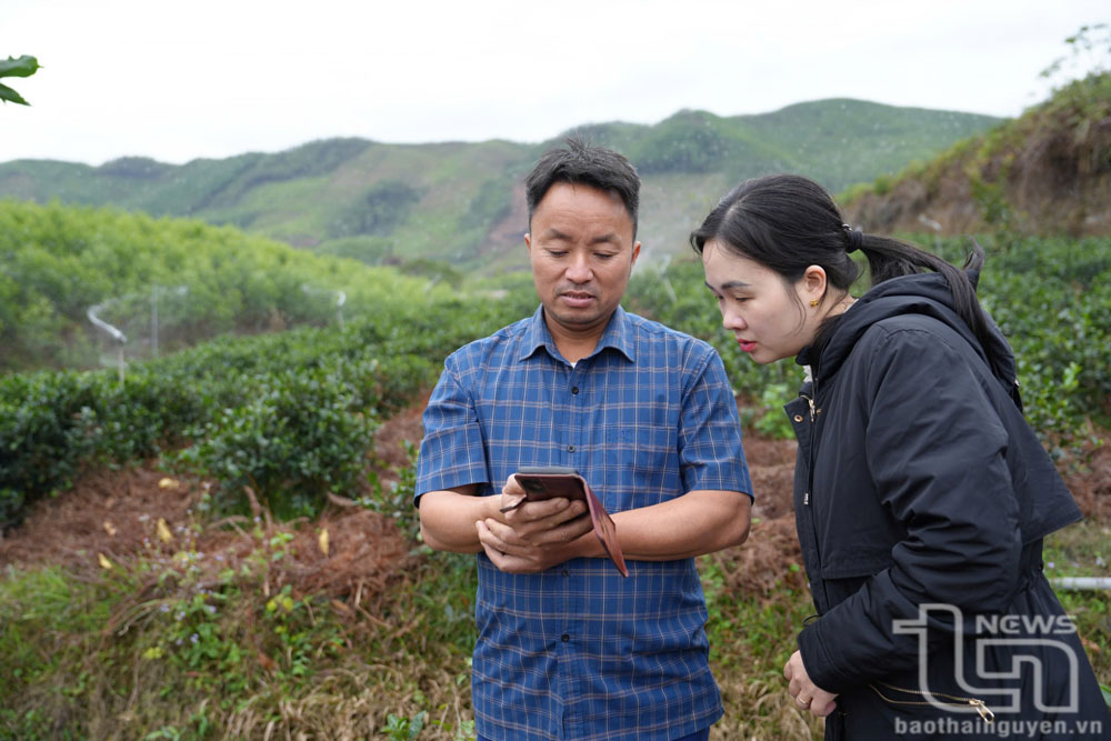 | Chỉ cần một chiếc điện thoại thông minh cài đặt phần mềm, anh Phạm Văn Tiến có thể điều khiển hệ thống tưới thông minh và theo dõi vườn chè ở mọi nơi, mọi lúc. |