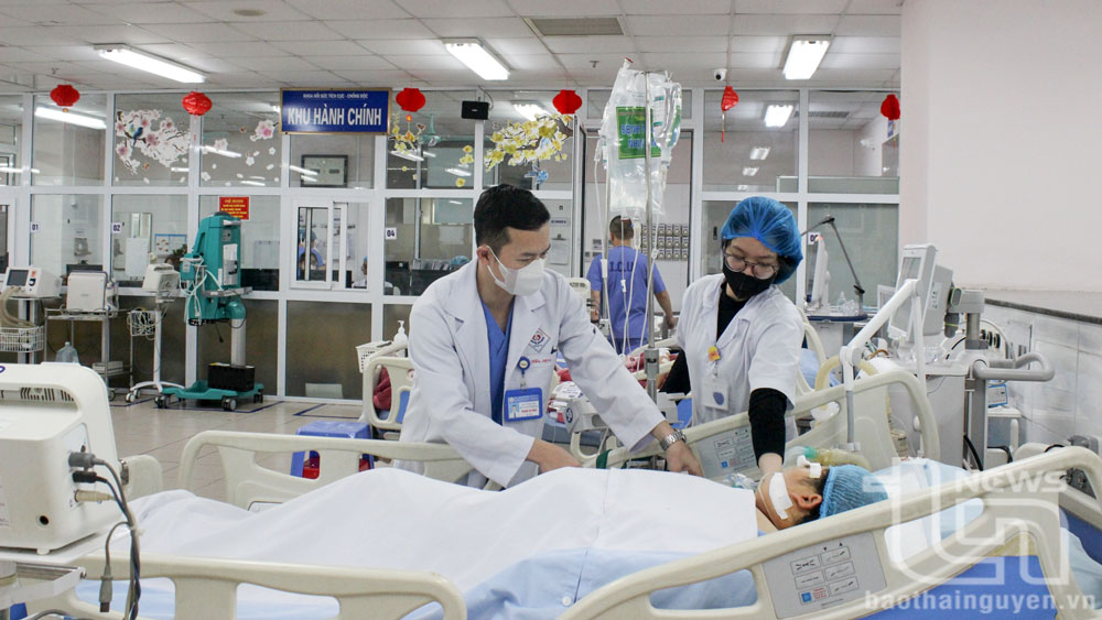 | Bác sĩ Khoa Hồi sức tích cực chống độc (Bệnh viện Trung ương Thái Nguyên) chăm sóc một bệnh nhân bị viêm tụy cấp. |