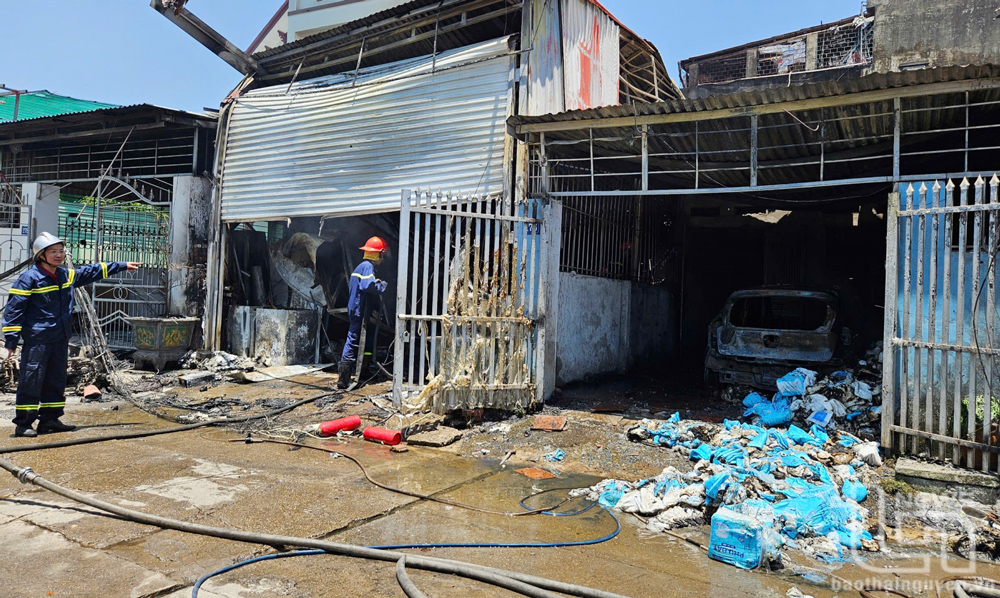 Trước đó, khoảng 9 giờ 50 phút ngày 12-5 xảy ra cháy tại hộ kinh doanh tạp hóa của anh D.N.H., sinh năm 1990, ở tổ 8, phường Gia Sàng. Sau đó đám cháy lan rộng sang hộ bên cạnh, chuyên kinh doanh, sửa chữa thiết bị điện tử, điện lạnh, điện dân dụng, điện nước, do anh L.T.L., sinh năm 1990, làm chủ. Tiếp đó, đám cháy lan sang nhà riêng của bà N.T.T., sinh năm 1966 và chị V.T.O., sinh năm 1991.