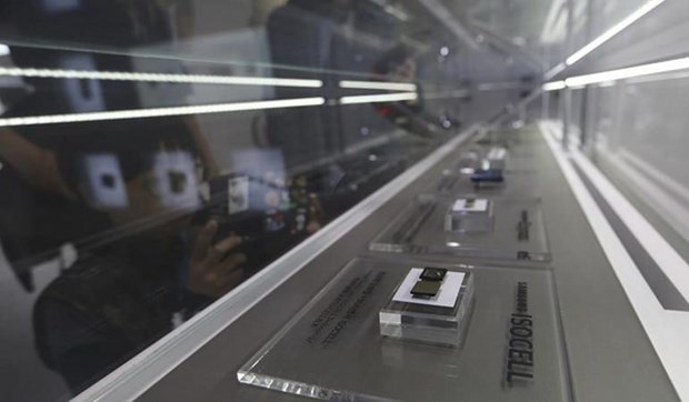 Các chip điện tử của Samsung được trưng bày ở Seoul. (Ảnh: AP)