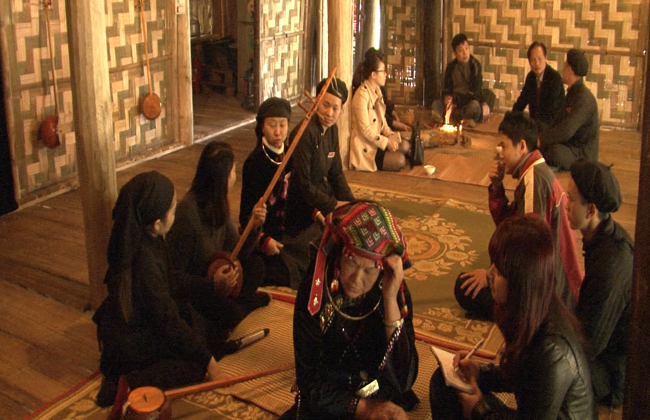 ( Du khách tại Nhà sàn bảo tồn hát Then)